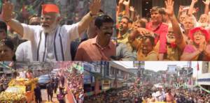 ബിജെപി പ്രവര്‍ത്തകരെ ആവേശത്തിലാഴ്ത്തി നരേന്ദ്രമോദിയുടെ പാലക്കാട്ടെ റോഡ് ഷോ. അഞ്ചുവിളക്കില്‍ നിന്നും പോസ്റ്റ് ഓഫീസ് ജംഗ്ഷന്‍ വരെയായിരുന്നു പ്രകടനം. പ്രധാനമന്ത്രിക്കൊപ്പം NDA സ്ഥാനാര്‍ത്ഥികളും റോഡ് ഷോയില്‍ പങ്കെടുത്തു.പാലക്കാട് മേഴ്‌സി കോളജിലെ ഹെലിപാഡിലിറങ്ങിയ പ്രധാനമന്ത്രിയെ പ്രധാനമന്ത്രിയെ പ്രകാശ് ജാവദേക്കര്‍ , ബിജെപി പാലക്കാട് ജില്ലാ പ്രസിഡണ്ട് എന്‍ ഹരിദാസ്, പാലക്കാട് നഗരസഭാ അധ്യക്ഷ പ്രമീള ശശിധരന്‍ എന്നിവര്‍ ചേര്‍ന്ന് സ്വീകരിച്ചു.പാലക്കാട്ടെ ജനാവലി അദ്ദേഹത്തെ പുഷ്പവൃഷ്ടി നടത്തിയും വന്ദേമാതരം വിളിച്ചും സ്വീകരിച്ചു. 30 മിനിറ്റോളം റോഡ് ഷോ നടന്നു. ഏകദേശം 50,000 പേര്‍ മോദിയുടെ റോഡ് ഷോയില്‍ അണിനിരന്നുവെന്ന് ബിജെപി ജില്ലാ നേതൃത്വം അവകാശപ്പെട്ടു.. സന്ദര്‍ശനത്തിന് മുന്നോടിയായി പാലക്കാട് നഗരത്തില്‍ കനത്ത സുരക്ഷ ഏര്‍പ്പെടുത്തിയിട്ടുണ്ട്.ഇന്നലെ വൈകിട്ട് മോദി കോയമ്പത്തൂരിലും റോഡ് ഷോ നടത്തിയിരുന്നു.
